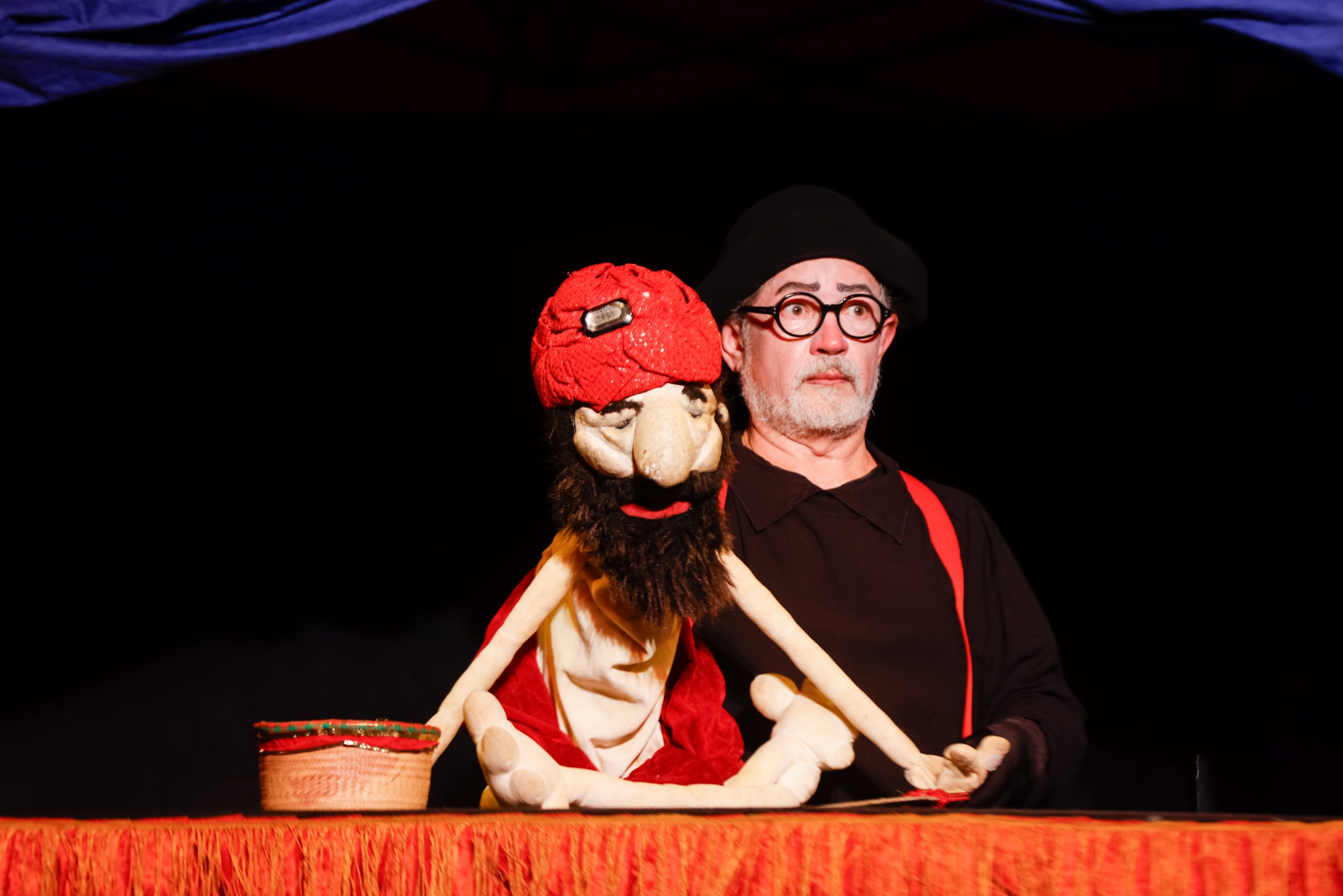 No picadeiro colorido de um pequeno circo mambembe, dois clowns saltimbancos (manipuladores à vista do público) armam sua tenda e apresentam uma série de números extraordinários com bonecos.